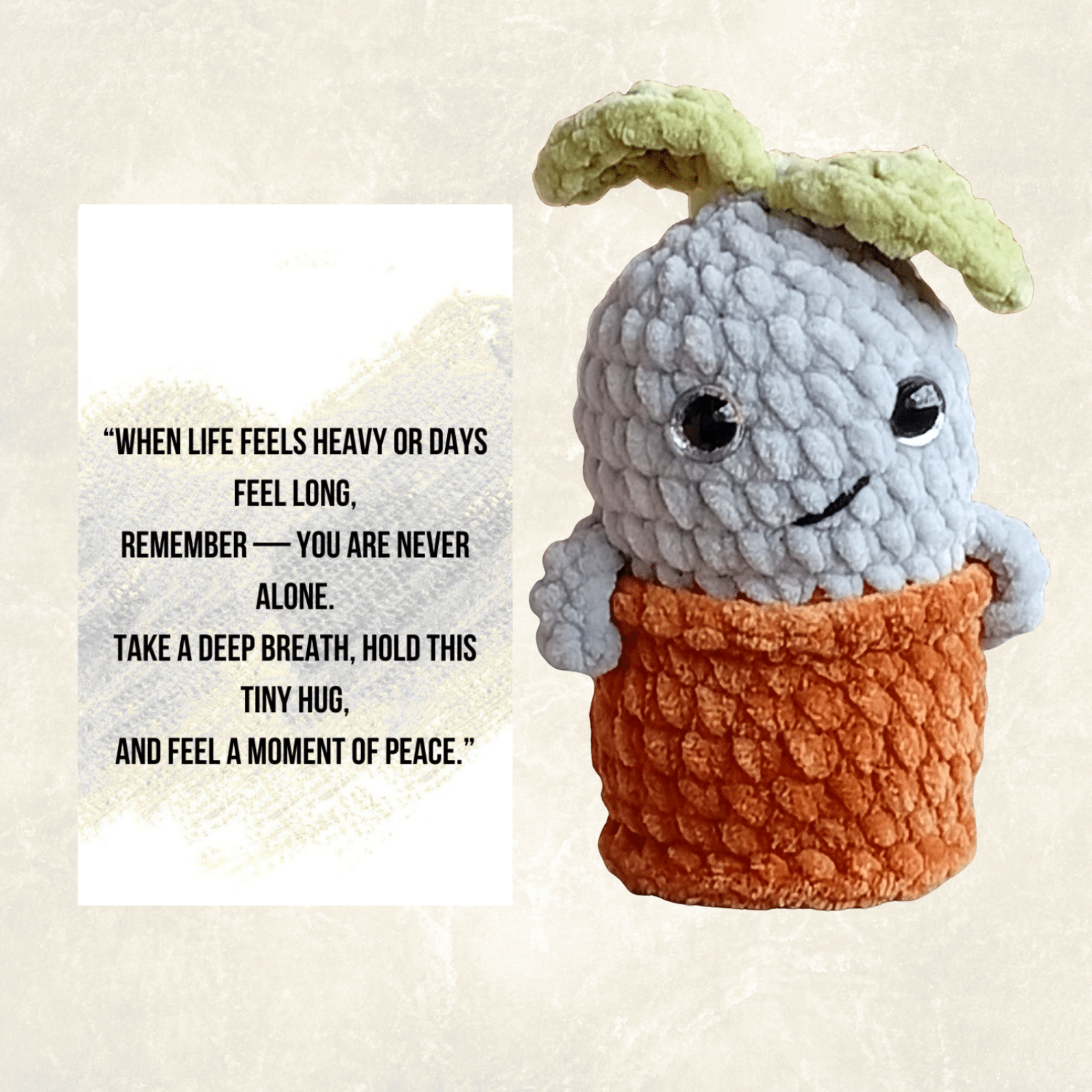 Lovingly hand-knitted and paired with meaningful laminated message cards, these miniature companions are designed to bring calm, joy, and emotional support. Perfect for gifting, sharing, or displaying together, they make a thoughtful gesture for both children and adults.